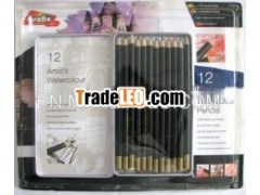 » 7\"12pcs Water Color pencils,metallic box with blister pack